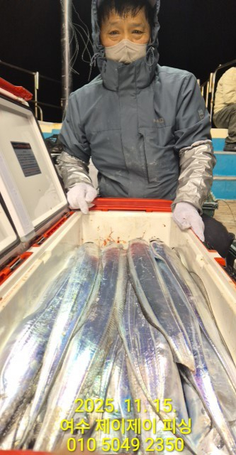 | 제목 : 여수 제이제이 11월14일 갈치 쿨러 조황 | ||